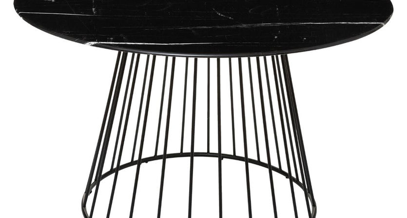 Composée d'une structure en fer légèrement conique qui soutient un plateau rond en verre trempé effet marbre, cette table apportera une touche chic et élégante à votre salle à manger.