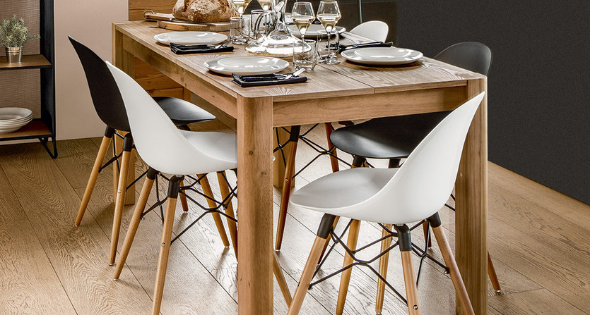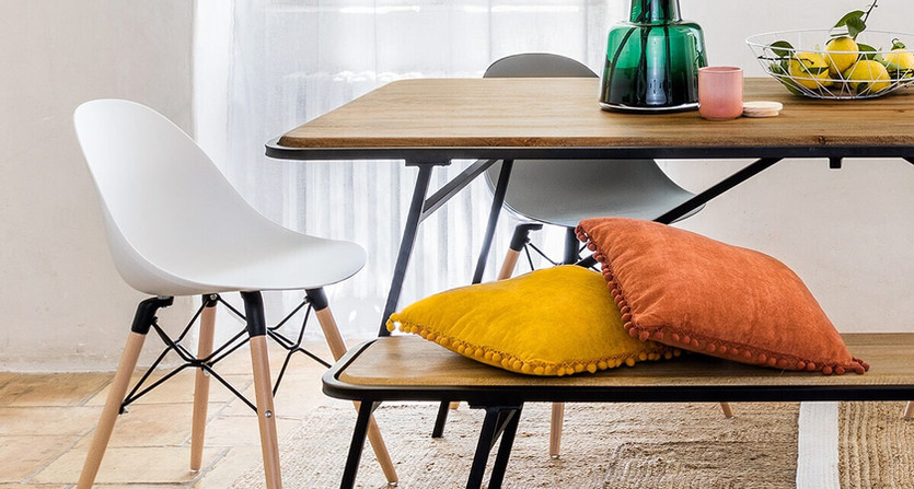 Ce qui nous charme en premier lieu, chez la chaise à dîner "Ezra", c'est son piètement original d'inspiration nordique. Les pieds en compas, réalisés en hêtre massif, sont soulignés par un entrelacs de métal apportant également de la solidité à l'ensemble. Vous pourrez utiliser cette chaise comme fauteuil de bureau, l'assise moulée offrant un grand confort.