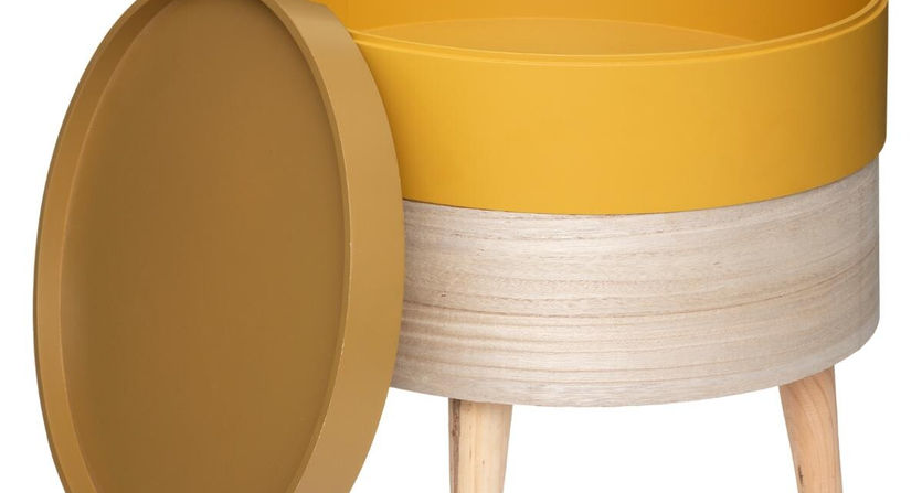 Table à café coffre "Yuki", couleur & bois D40 cm blanc - jaune - gris ou bleu 44.90€