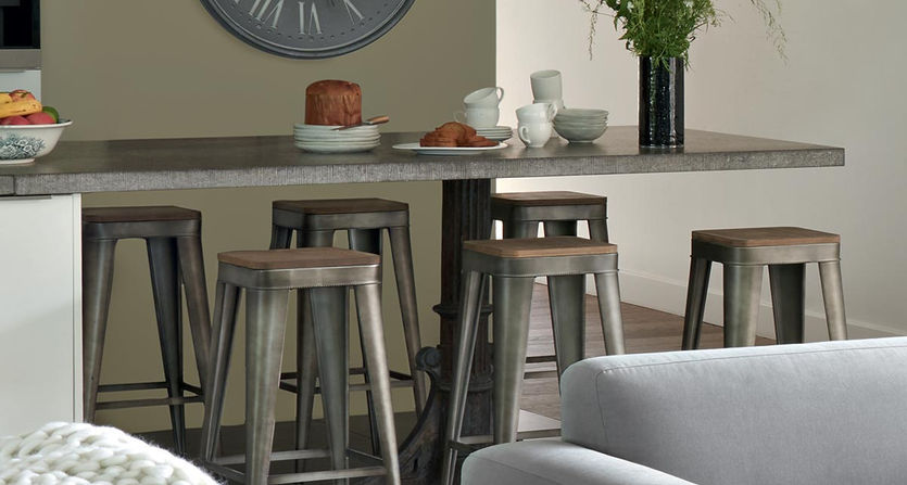 Inspiré des tabourets d'atelier en tôle emboutie de l'ère industrielle, le tabouret haut "Joris" en a hérité l'extrême solidité et un style rétro unique. Détail original : le tabouret design "Joris" dispose d'une assise en bois clair de badamier.