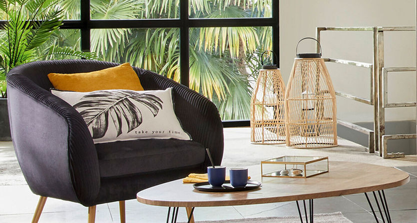 Le fauteuil "Solaro" offre une assise en velours plissé qui présente un aspect côtelé à l'intérieur, créant un saisissant effet de profondeur. Son coussin est déhoussable pour un entretien facilité.